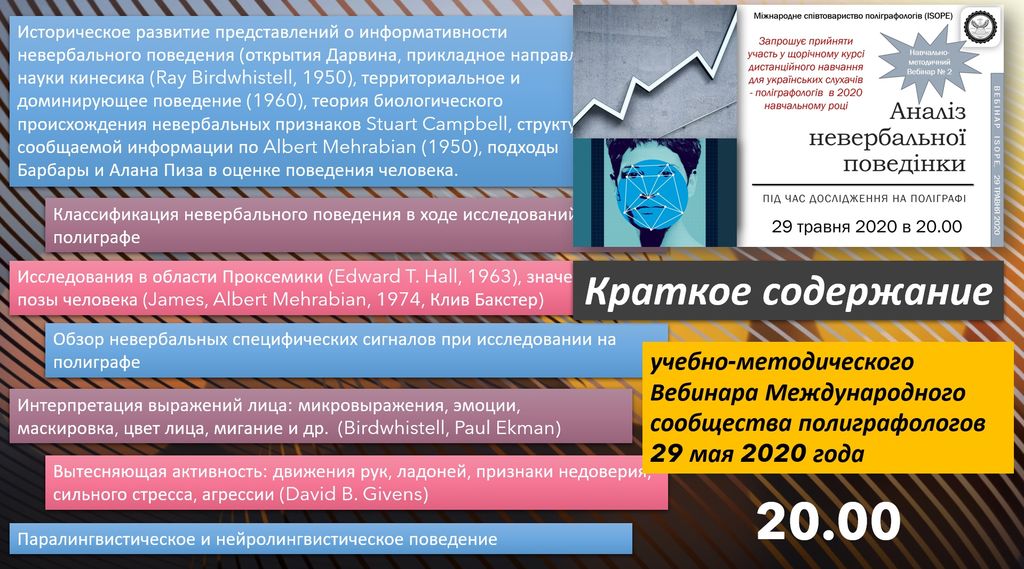 Тематика расширенных учебно-методических Вебинаров Международного сообщества полиграфологов (ISOPE) в 2020 году в Украине.