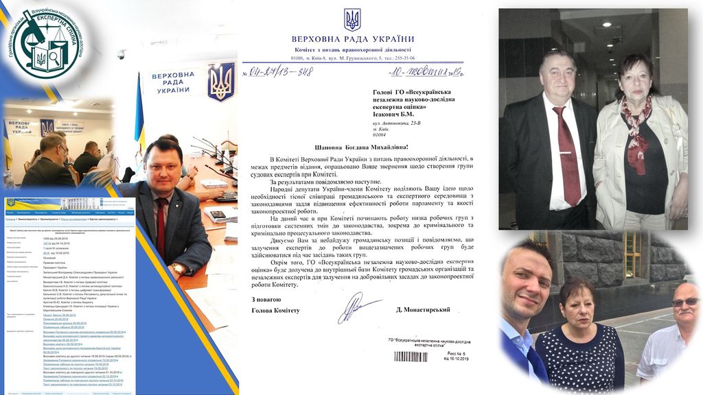 19 листопада 2021 року відбулась чергова робоча зустріч учасників законодавчих ініціатив щодо судово-експертної реформи у Верховній Раді України за участю народного депутата України, заступника голови Комітету з питань правоохоронної діяльності Верховної Ради України Максима Павлюка. На зустрічі були присутні всеукраїнські громадські організації судових експертів та представники Міністерства юстиції України (Наталія Ткаченко, Олена Стадник). Від ГО «Всеукраїнська незалежна науково-дослідна експертна спілка» Олег Назаров, ВГО «Союз експертів України» Ігор Стародубов, Дмитро Беззубов, а також представники ГО «Національна асоціація судових експертів України» Ігор Лисюк, Андрій Коструб. ГО «Всеукраїнська незалежна науково-дослідна експертна спілка» з 2018 року на постійній основі займається законодавчою ініціативою щодо вдосконалення діяльності судових екпертів та включена Комітетом з питань правоохоронної діяльності до внутрішньої бази Комітету громадських організацій та незалежних експертів для залучення на добровільних засадах до законотворчої діяльності в Верховній Раді України (лист Комітету Верховної Ради України від 10.10.2019 № 04-27/13-348). В 2019 році у тому числі за активної участі ГО «ВННДЕС» було скасовані так звані «правки Лозового» та прийняті в діючій редакції Закона № 187-IX від 04.10.2019 зміни до статей 243, 244 КПК України.