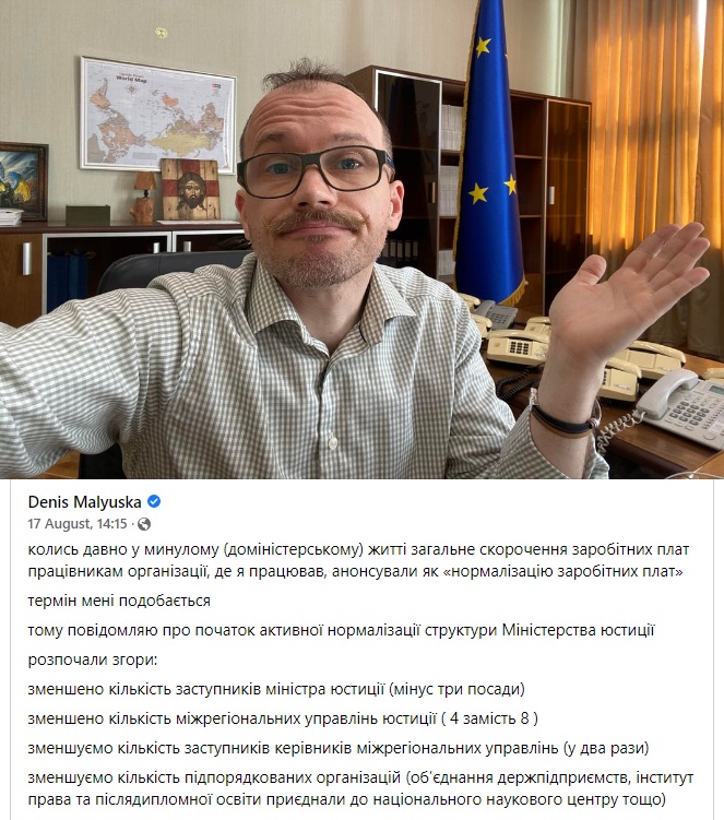 За інформацією 17 серпня 2022 року Міністра юстиції України Деніса Малюськи, Інститут права та післядипломної освіти Міністерства юстиції України буде приєднано до Національного наукового центру «Інститут судових експертиз ім. Засл. проф. М.С. Бокаріуса» Міністерства юстиції України. Зі слів Міністра: "колись давно у минулому (доміністерському) житті загальне скорочення заробітних плат працівникам організації, де я працював, анонсували як «нормалізацію заробітних плат». Термін мені подобається. Тому повідомляю про початок активної нормалізації структури Міністерства юстиції розпочали згори: зменшуємо кількість підпорядкованих організацій (об’єднання держпідприємств, інститут права та післядипломної освіти приєднали до національного наукового центру тощо)". Інститут права та післядипломної освіти Міністерства юстиції України було засновано 13.03.2002 року. Основний вид діяльності 85.59 Інші види освіти, н. в. і. у.