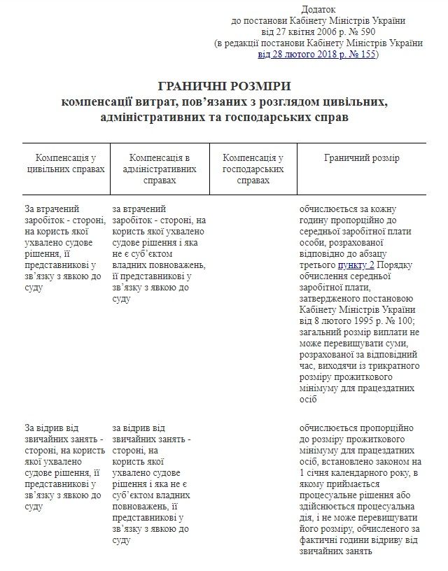 5. Згідно пунктів 2, 4, 5 Постанови Кабінету Міністрів України від 27 квітня 2006 р. № 590 «Про граничні розміри компенсації витрат, пов'язаних з розглядом цивільних, адміністративних та господарських справ, і порядок їх компенсації за рахунок держави» встановлено, що коли обидві сторони у цивільній або адміністративній справі звільнені від оплати судових витрат, вони компенсуються за рахунок держави в їх фактичному розмірі, але не більше граничних розмірів компенсації таких витрат згідно з додатком (додається нище). Компенсація судових витрат у цивільних та адміністративних справах здійснюється за рахунок і в межах бюджетних асигнувань судів, якими винесено відповідне рішення. Міністерству фінансів надано вказівку передбачати Державній судовій адміністрації за відповідною бюджетною програмою кошти для компенсації судових витрат у цивільних та адміністративних справах.