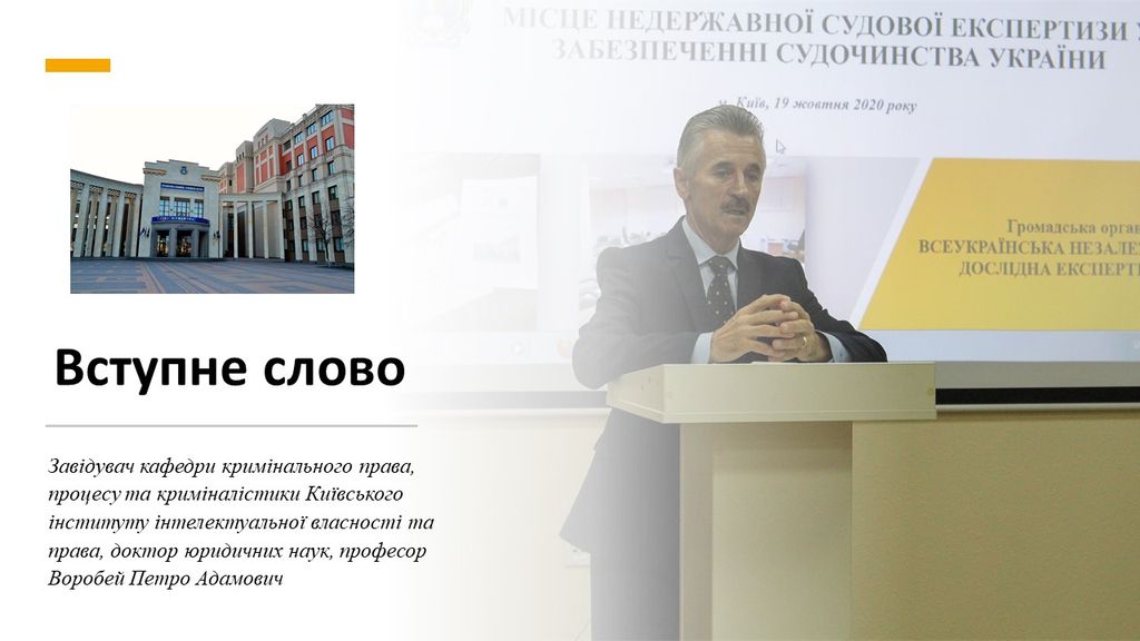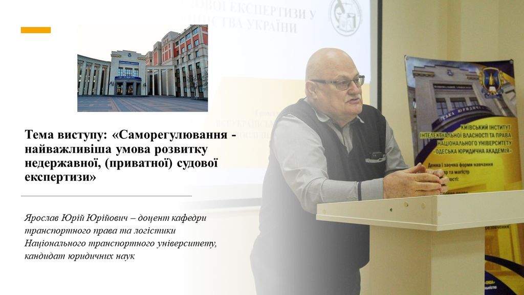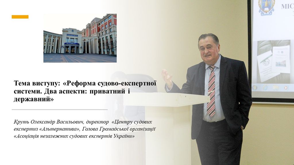 Тема виступу: «Реформа судово-експертної системи. Два аспекти: приватний і державний»