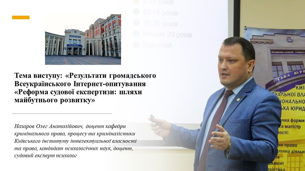 Тема виступу: «Результати громадського Всеукраїнського Інтернет - опитування «Реформа судової експертизи: шляхи майбутнього розвитку»