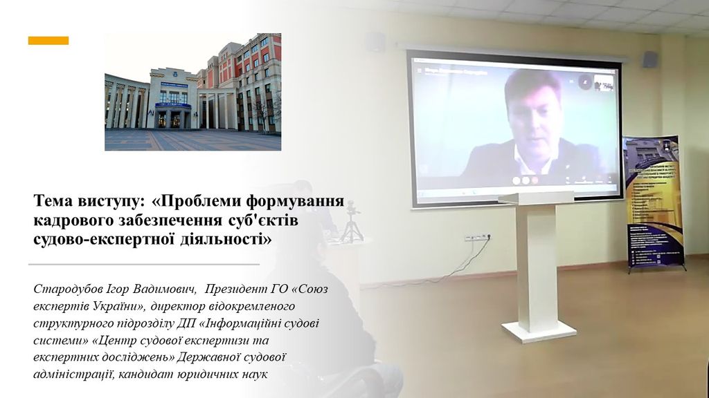 Тема виступу: «Проблеми формування кадрового забезпечення суб'єктів судово-експертної діяльності»