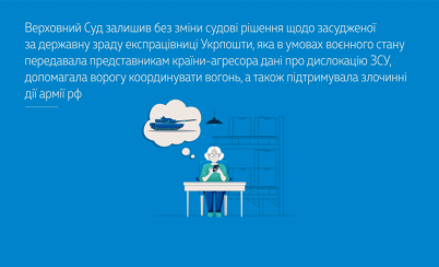 Про це йдеться в постанові Касаційного кримінального суду у складі Верховного Суду, який розглянув касаційну скаргу захисника засудженої за державну зраду (ч. 2 ст. 111 КК України) колишньої працівниці АТ «Укрпошта».