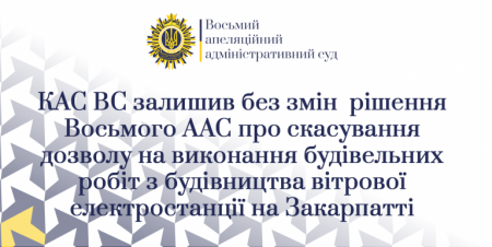 За результатами касаційного перегляду справи № 260/1058/19 колегія суддів Касаційного адміністративного суду у складі Верховного Суду (далі – КАС ВС) залишила без змін рішення Восьмого апеляційного адміністративного суду (далі – Восьмий ААС) від 2 вересня 2020 року, яким було визнано протиправним і скасовано дозвіл на виконання будівельних робіт з будівництва вітрової електростанції, виданого Державною архітектурно-будівельною інспекцією України (далі – ДАБІ) на об’єкт «Нове будівництво вітрової електростанції 120 МВт за межами населеного пункту на території Воловецької селищної ради Воловецького району та за межами сіл Березники, Дусино, Неліпино та Тибава Свалявського району Закарпатської області (І черга будівництва)».