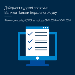 Пропонуємо до вашої уваги дайджест судової практики Великої Палати Верховного Суду (рішення, внесені до ЄДРСР за квітень 2024 року) – https://supreme.court.gov.ua/userfiles/media/new_folder_for_uploads/supreme/sud_pract/Daidgest_VP_VS_01_04_2024.pdf.