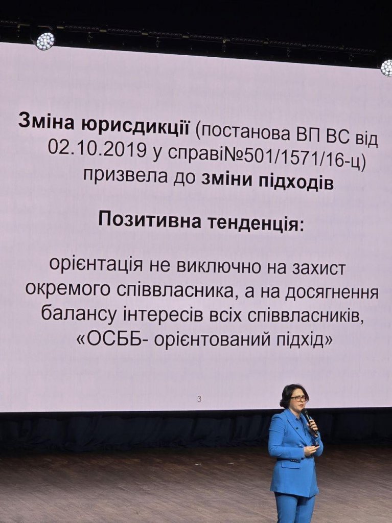 За словами Олени Кібенко, за декілька років з’явилася позитивна тенденція в підходах до розгляду зазначених спорів. Зокрема, орієнтація не виключно на захист окремого співвласника, а на досягнення балансу інтересів усіх співвласників та застосування «ОСББ-орієнтованого» підходу.