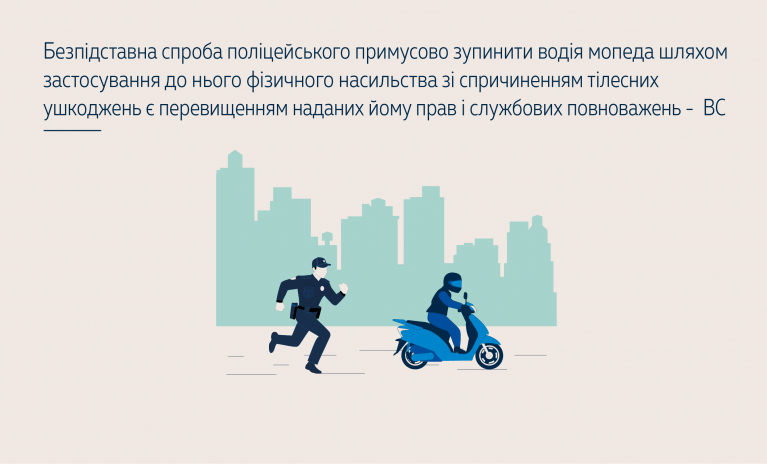 За обставинами справи, працівник правоохоронного органу, не висуваючи вимог зупинитися, раптово підбіг до водія мопеда ззаду та умисно вдарив його кулаком у плече, після цього застосував спосіб удушення шляхом захвату рукою шиї потерпілого і згодом продовжив незаконне застосування насильства.