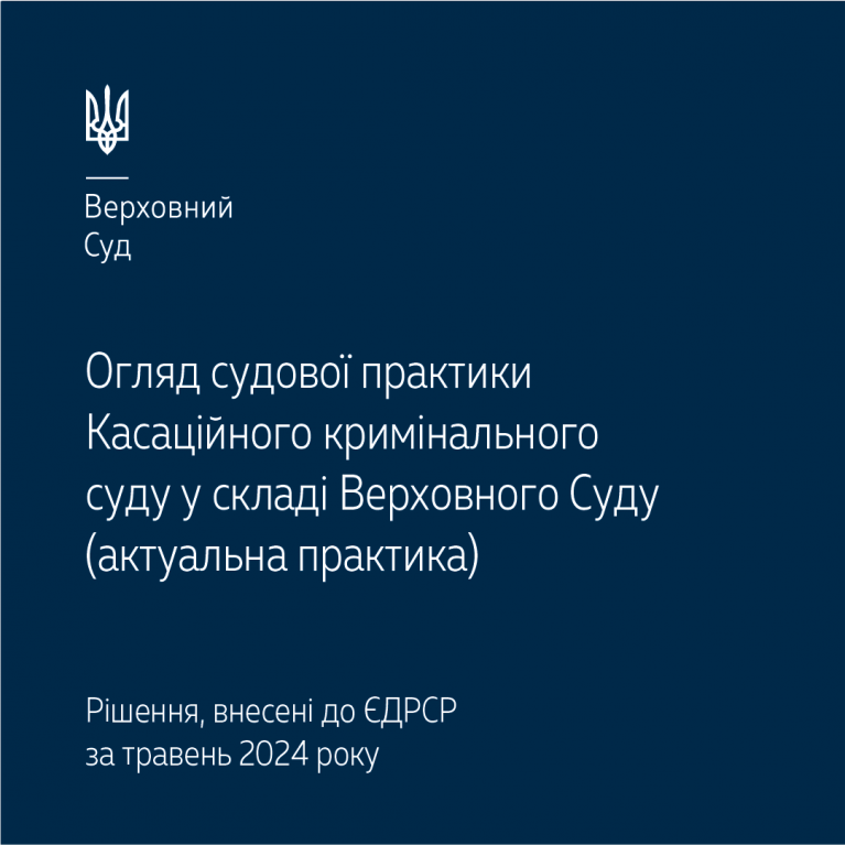 До уваги черговий огляд актуальної судової практики Касаційного кримінального суду у складі Верховного Суду – за травень 2024 року: https://supreme.court.gov.ua/userfiles/media/new_folder_for_uploads/supreme/ogliady/Oglyad_KKS_05_2024.pdf