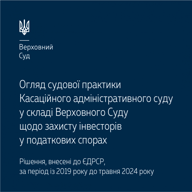До уваги огляд судової практики Касаційного адміністративного суду у складі Верховного Суду щодо захисту інвесторів у податкових спорах –https://supreme.court.gov.ua/userfiles/media/new_folder_for_uploads/supreme/ogliady/Ohliad_investory_2019_2024.pdf