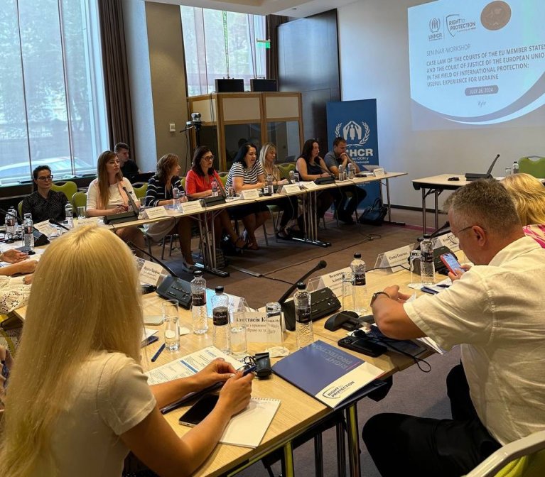 26 липня 2024 року Національна школа суддів України спільно з Благодійним фондом "Право на захист" та Агентством ООН у справах біженців (УВКБ ООН) провели семінар-практикум "Практика судів країн-членів Європейського Союзу та Суду ЄС у сфері міжнародного захисту: корисний досвід для України" для суддів Верховного Суду, апеляційних, окружних адміністративних та місцевих загальних судів.
