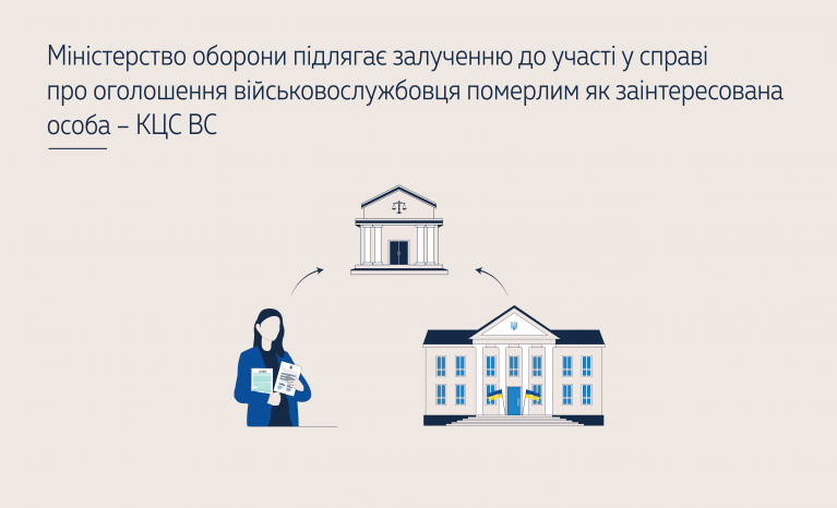 Під час встановлення юридичного факту смерті військовослужбовця у справах про оголошення його померлим або визнання його безвісно відсутнім Міністерство оборони України або відповідні військові частини підлягають залученню до участі у справі з метою захисту інтересів держави, оскільки визнання в судовому порядку військовослужбовця безвісно відсутнім або оголошення його померлим є підставою для виключення військовослужбовця зі списків особового складу військової частини та припинення виплати членам його сім’ї грошового забезпечення.