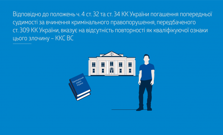 Відповідно до положень ч. 4 ст. 32 та ст. 34 КК України погашення попередньої судимості за вчинення кримінального правопорушення, передбаченого ст. 309 КК України, вказує на відсутність зазначеної кваліфікуючої ознаки.