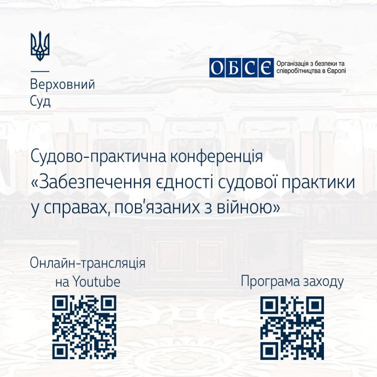 Запрошуємо до перегляду онлайн-трансляції заходу на ютуб-каналі Верховного Суду – https://www.youtube.com/@supremecourtua, а також ділимося новим дайджестом судової практики Верховного Суду у цій категорії справ – https://supreme.court.gov.ua/userfiles/media/new_folder_for_uploads/supreme/ogliady/Daigest_sud_prakt_VS_spravi_vijna.pdf