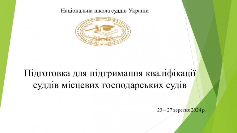 Національна школа суддів України з 23 по 27 вересня 2024 року проводить підготовку для підтримання кваліфікації суддів місцевих господарських судів.