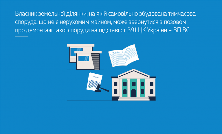 За результатами розгляду справи Велика Палата ВС погодилася з висновками місцевого суду про те, що нежитлові приміщення є тимчасовими спорудами, які не відносяться до нерухомого майна.