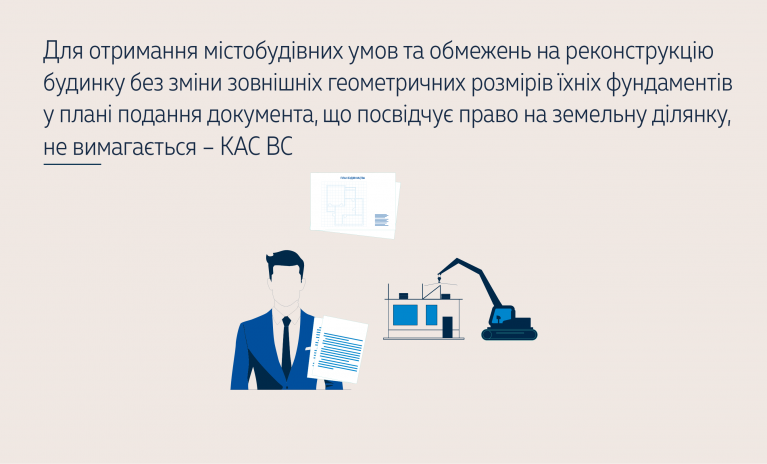На підставі аналізу положень ч. 4 ст. 34 Закону України «Про регулювання містобудівної діяльності» Суд дійшов висновку, що право на виконання будівельних робіт без документа, який засвідчує право на земельну ділянку, виникає за наявності чотирьох самостійних підстав: 1) реконструкція, реставрація або капітальний ремонт об’єктів будівництва без зміни зовнішніх геометричних розмірів їхніх фундаментів у плані; 2) реконструкція або капітальний ремонт автомобільних доріг, залізничних колій, ліній електропередачі, зв’язку, трубопроводів, інших лінійних комунікацій у межах земель їх розміщення; 3) комплексна реконструкція кварталів (мікрорайонів) застарілого житлового фонду відповідно до містобудівної документації на замовлення органів державної влади чи органів місцевого самоврядування на відповідних землях державної чи комунальної власності; 4) нове будівництво об’єктів інженерно-транспортної інфраструктури відповідно до містобудівної документації на замовлення органів державної влади чи органів місцевого самоврядування на відповідних землях державної чи комунальної власності.