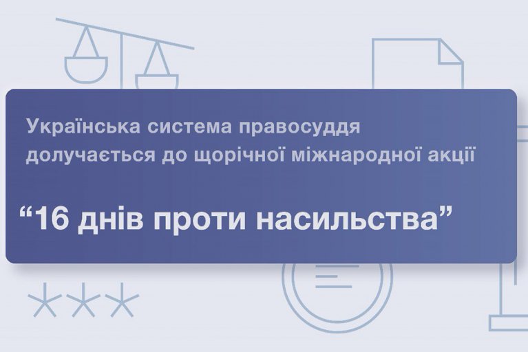 Цього року українська система правосуддя долучається до щорічної міжнародної акції «16 днів проти насильства», започаткувавши наповнення відповідних інформаційних розділів на сайтах судів України. В 1999 році Генеральна Асамблея ООН оголосила 25 листопада Міжнародним днем боротьби за ліквідацію насильства щодо жінок. І щорічно з цього ж дня стартує міжнародна акція «16 днів проти гендерно зумовленого насильства», яка проводиться до 10 грудня (Дня прав людини) включно.