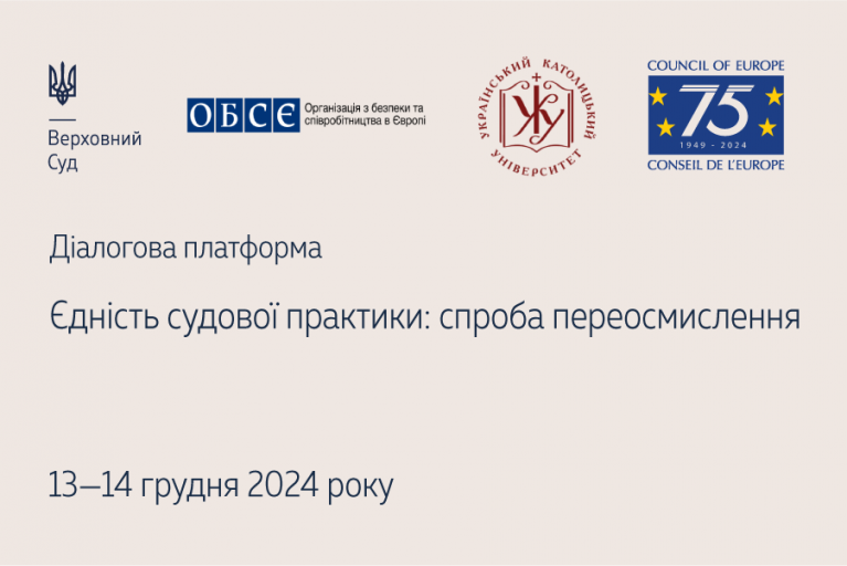 13–14 грудня 2024 року Верховний Суд спільно з Українським католицьким університетом, проєктом Ради Європи «Підтримка судової влади України в умовах війни та післявоєнного періоду» і Програмою підтримки ОБСЄ для України в межах проєкту «Підтримка Верховного Суду та вищих судів у реалізації судової реформи та забезпеченні доступу до правосуддя в умовах війни» організовує діалогову платформу «Єдність судової практики: спроба переосмислення».