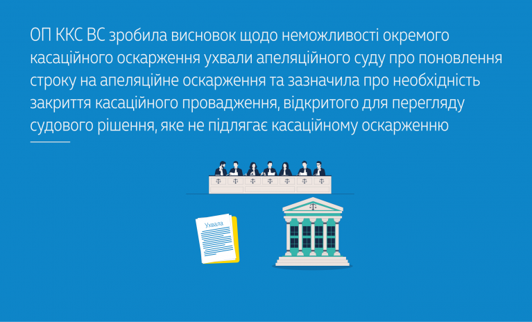 Ухвала суду апеляційної інстанції, якою поновлено строк на апеляційне оскарження, не підлягає окремому оскарженню в касаційному порядку.