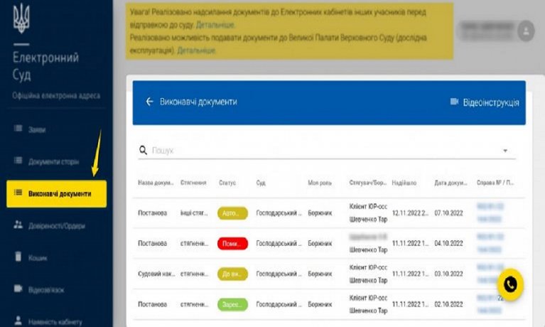 2. Перейти до розділу «Виконавчі документи» та обрати необхідний документ.