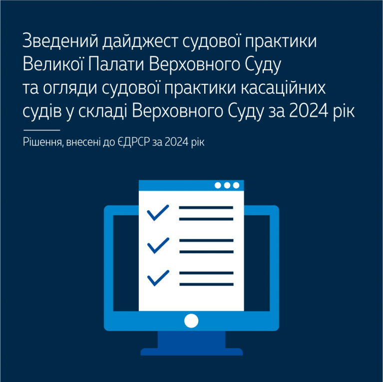 Пропонуємо до уваги зведений дайджест судової практики Великої Палати Верховного Суду й чотири річні огляди судової практики касаційних судів у складі Верховного Суду за 2024 рік.