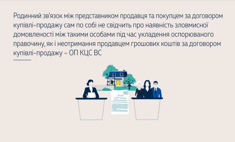 Укладення договору купівлі-продажу в ситуації, коли від імені продавця діє представник, з іншою стороною – покупцем (родичем представника продавця) саме по собі не свідчить, що мала місце зловмисна домовленість сторін оспорюваного договору для переслідування власних інтересів всупереч інтересам продавця.