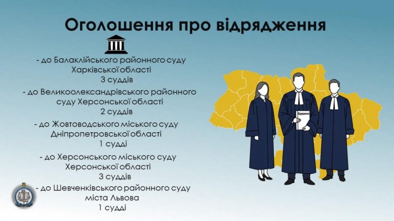 Інформуємо, що до розгляду в засіданні Вищої кваліфікаційної комісії суддів України призначено питання про відрядження (тимчасове переведення) для здійснення правосуддя: