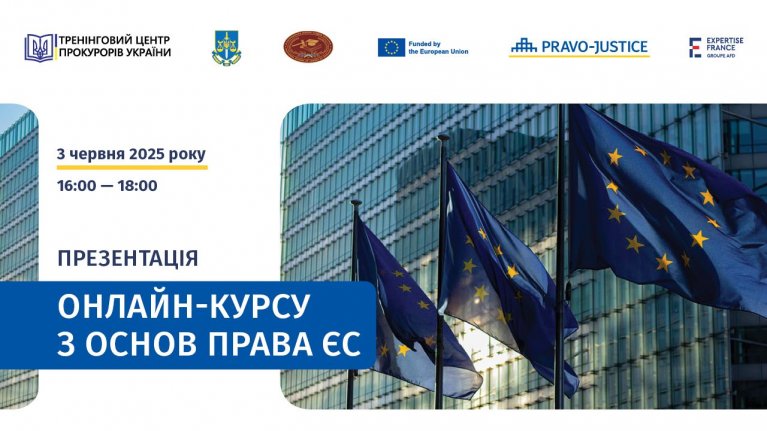 3 червня 2025 року в Києві відбулася презентація нового інтерактивного дистанційного курсу "Основи права ЄС", розробленого в межах проєкту ЄС "Право-Justice" у співпраці з Національною школою суддів України та Тренінговим центром прокурорів України.