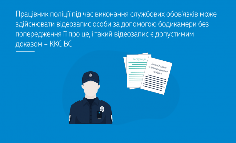 Залишаючи без зміни рішення судів попередніх інстанцій, Верховний Суд вказав, що відповідно до ст. 40 Закону України «Про Національну поліцію» поліція для виконання покладених на неї завдань та здійснення повноважень, визначених законом, може застосовувати такі технічні прилади, технічні засоби та спеціалізоване програмне забезпечення, як, зокрема, фото- і відеотехніку, у тому числі техніку, що працює в автоматичному режимі, технічні прилади та технічні засоби з виявлення та/або фіксації правопорушень. Вказані технічні прилади та технічні засоби поліція може закріплювати на однострої.