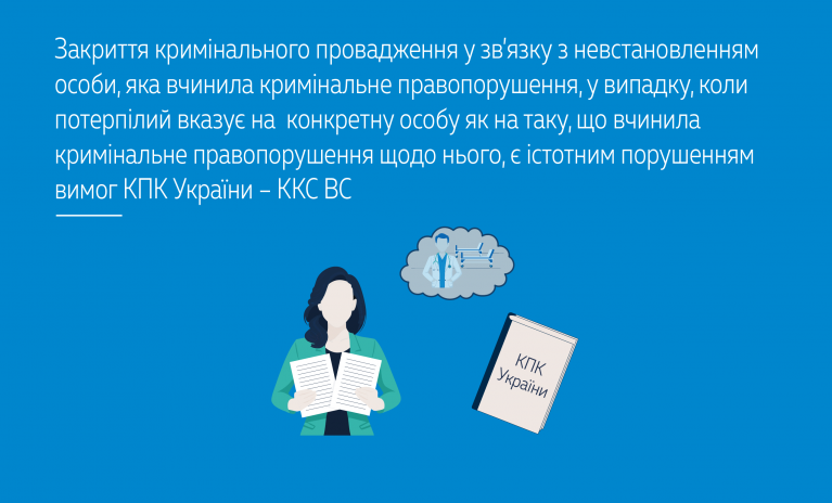 Скасовуючи рішення судів попередніх інстанцій та призначаючи новий розгляд у суді першої інстанції, Верховний Суд зазначив, що в провадженні, де потерпілий вказує на конкретну особу як на таку, що вчинила кримінальне правопорушення щодо нього, орган досудового розслідування за результатами всебічного, повного і неупередженого дослідження всіх обставин кримінального провадження має вирішити питання про наявність чи відсутність події кримінального правопорушення, а за її встановлення – про наявність або відсутність ознак кримінального правопорушення в діянні конкретної особи, про достатність доказів для доведення винуватості конкретної особи в суді, про наявність / відсутність підстав до звільнення від кримінальної відповідальності конкретної особи.