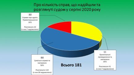 Інформація щодо кількості справ розглянутих Луганським апеляційним судом у серпні 2020 року