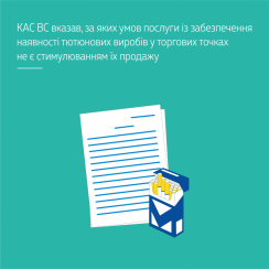 Сам факт укладення договору, згідно з умовами якого виконавець надає замовнику послуги із забезпечення і підтримки наявності у продажу тютюнових виробів, не може розцінюватися як захід, спрямований на стимулювання продажу тютюнових виробів, а розміщення самого виробу у місці його продажу відповідно до Правил роздрібної торгівлі тютюновими виробами, за відсутності іншої інформації, не є стимулюванням до його придбання.