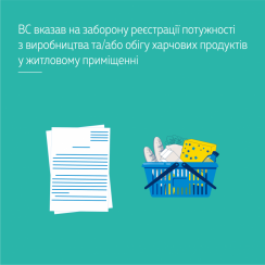 Враховуючи наведене, Верховний Суд дійшов висновку, що квартира в багатоквартирному житловому будинку, не виведена із житлового фонду, не може бути зареєстрована як потужність із виробництва та/або обігу харчових продуктів у розумінні Закону України «Про основні принципи та вимоги до безпечності та якості харчових продуктів», оскільки існує пряма заборона закону на використання квартири не за призначенням.