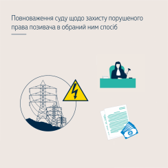 – відповідно до п. 7.11 зазначених Правил на період розгляду судом спірних питань щодо порушення споживачем цих Правил та/або умов договорів, наявність яких передбачена цими Правилами, припинення електропостачання такого споживача, пов’язане з оскаржуваним фактом порушення, не здійснюється за умови своєчасного надання споживачем до моменту відключення відповідної ухвали суду про прийняття позовної заяви до розгляду. Відкриття провадження у справі після факту відключення споживача є підставою для відновлення електропостачання.