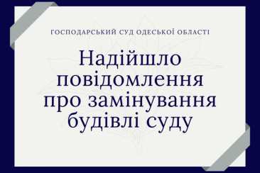 4 березня 2021 року Господарський суд Одеської області інформує про те, що надійшло повідомлення про замінування будівлі Господарського суду Одеської області.