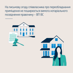 Велика Палата ВС зауважила, що допоміжні приміщення багатоквартирного (у тому числі двоквартирного) будинку, як і елементи спільного майна такого будинку взагалі, є обмежено оборотоздатними. При цьому дії щодо реконструкції квартири та переобладнання горища, на які дала згоду позивачка, не є правочином, який підлягає нотаріальному посвідченню. Тому на таку згоду не поширюється вимога нотаріального посвідчення правочинів з нерухомим майном.