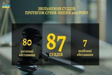 За аналогічний період 2020 року звільнено 160 суддів: за загальними обставинами звільнено 139 суддів (138 – у зв’язку з поданням заяви про відставку, 1 – у зв’язку з поданням заяви про звільнення за власним бажанням); за особливими обставинами звільнено 21 суддю (18 – за вчинення істотного дисциплінарного поступку, 3 – внаслідок визнання судді за результатами кваліфікаційного оцінювання таким, що не відповідає займаній посаді).