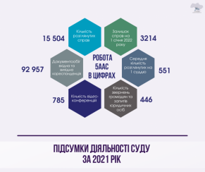 П'ятий апеляційний адміністративний суд опублікував підсумки роботи суду у 2021 році.