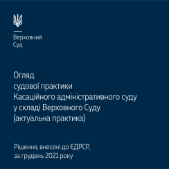 Пропонуємо ознайомитися з оглядомактуальної судової практики Касаційного адміністративного суду у складі Верховного Суду, в якому представлено рішення, внесені до ЄДРСР, за грудень 2021 року.