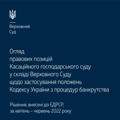 Пропонуємо до уваги правових позицій Касаційного господарського суду у складі Верховного Суду щодо застосування положень Кодексу України з процедур банкрутства (рішення, внесені до ЄДРСР, за квітень – червень 2022 року).
