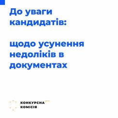 Якщо кандидат не усуне недоліки у строк і спосіб, встановлений Комісією, він втратить можливість бути допущеним до участі у конкурсі.