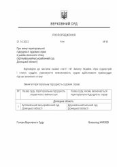 Ураховуючи неможливість здійснення правосуддя Артемівським міськрайонним судом Донецької області під час воєнного стану, територіальну підсудність справ цього суду визначено Дружківському міському суду Донецької області.