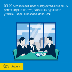 Щодо змісту детального опису робіт (наданих послуг), виконаних адвокатом, Велика Палата ВС виснувала, що подання детального опису робіт (наданих послуг), виконаних адвокатом, та здійснених ним витрат, необхідних для надання правничої допомоги, не є самоціллю, а є необхідним для визначення розміру витрат на професійну правничу допомогу з метою розподілу судових витрат.