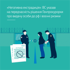 Про це зазначив Верховний Суд, відмовивши в задоволенні касаційної скарги прокурора в «екстрадиційній справі». Так, прокурор не погодився з апеляційним судом, який залишив у силі ухвалу слідчого судді про скасування постанови Генерального прокурора щодо видачі (екстрадиції) громадянина рф. На думку прокурора, не існувало жодної обставини, яка б унеможливлювала прийняття такого рішення Генпрокурором.