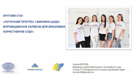 Під час круглого столу «Поточний прогрес і виклики щодо впровадження сервісів для вразливих користувачів суду», організованому Проєктом ЄС «Право-Justice» та ГО «Всеукраїнська асоціація працівників судів», Вінницький апеляційний суд презентував алгоритм запровадження та роботи Служби підтримки постраждалих від домашнього насильства.