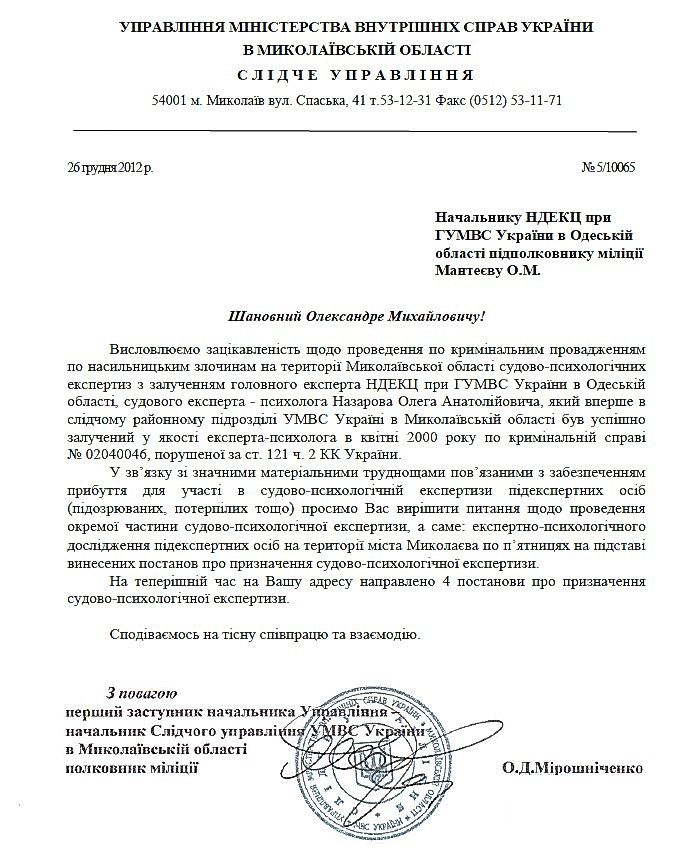 3. Назаров О.А. Пам’ятка судді щодо призначення судово-психологічної експертизи в кримінальному, цивільному та адміністративному судочинству. Інформаційний лист. - Миколаїв: НДЕКЦ при УМВС України в Миколаївській області, 2011. - 10 с.