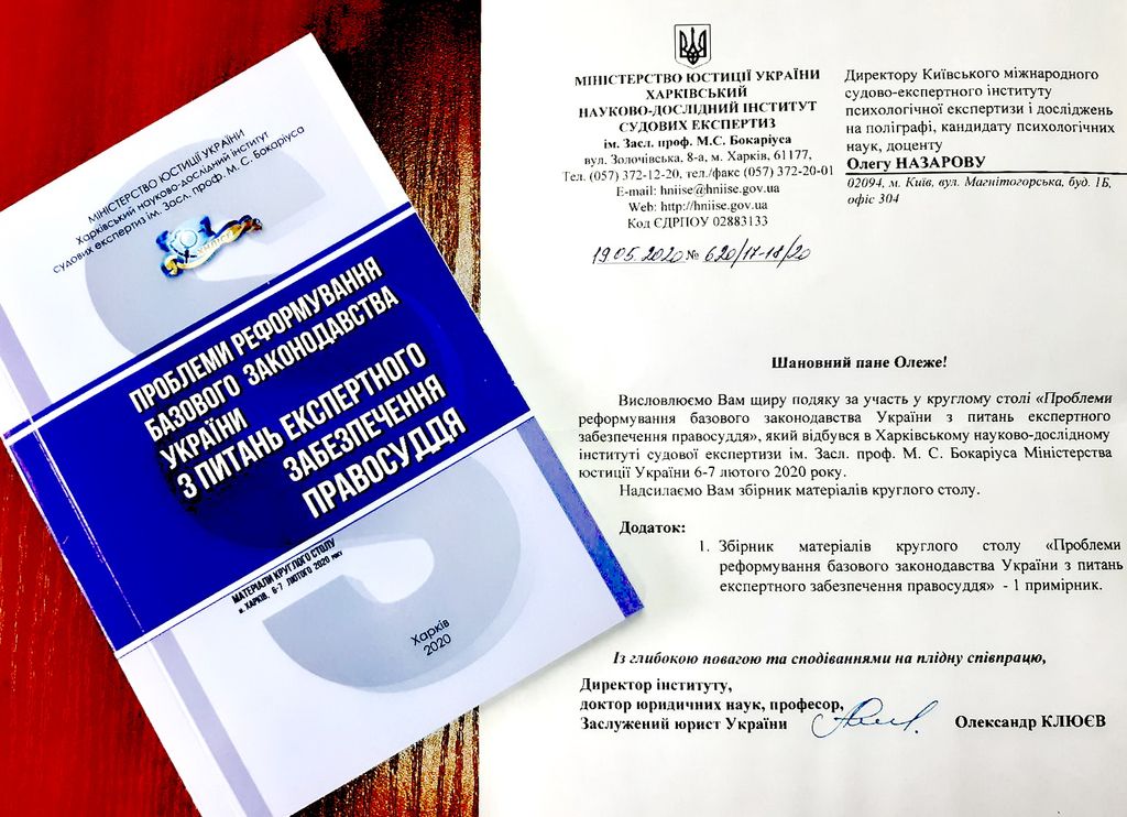 09 липня 2020 року кандидатом психологічних наук, доцентом, директором Київського міжнародного судово-експертного інституту психологічної експертизи і досліджень на поліграфі, головним редактором online журналу "Судово-психологічна експертиза. Застосування поліграфа і спеціальних знань" Назаровим Олегом Анатолійовичем був успішно складений комплексний (з права та спеціалізації) іспит в Центральній експертно-кваліфікаційній комісії при Міністерстві юстиції України, за результатом якого незалежному "приватному" фахівцю ВПЕРШЕ В Україні було присвоєно (підтверджено) кваліфікацію судового експерта з правом проведення експертиз за спеціальністю 14.1 "Психологічні дослідження", як експерту, який НЕ ПРАЦЮЄ у державних спеціалізованих експертних установах.