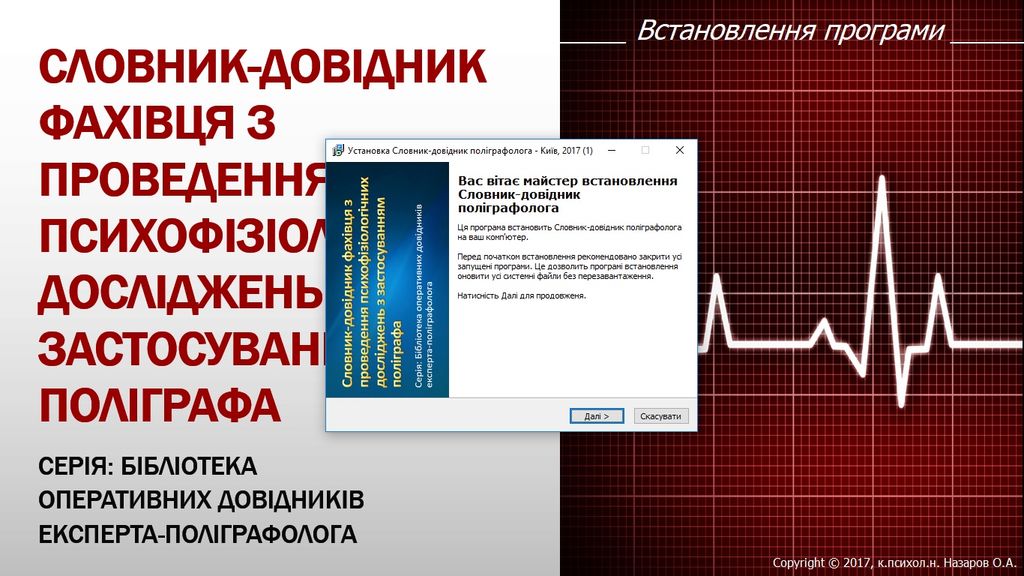 Важливо! Пароль при встановленні програми слово українською мовою: експерт-поліграфолог