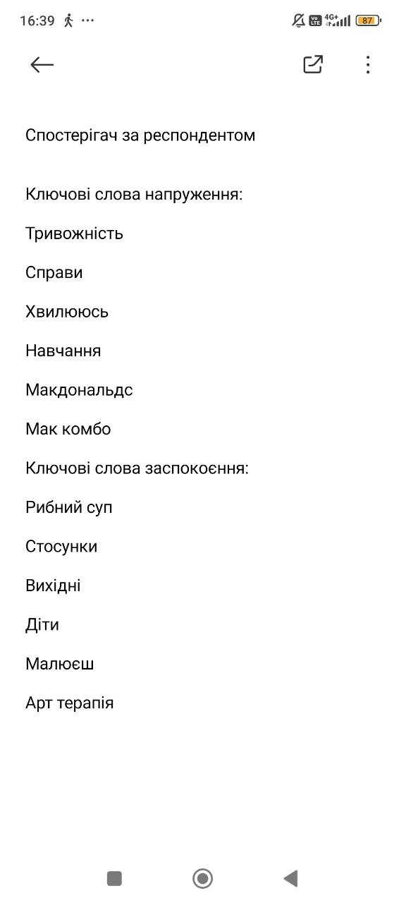 На фото нище можна бачити результати лабораторних робіт в рамках навчальних дисциплін та записів спостерігачів щодо слів та питань, які викликали емоційні та значущі реакції у респондентів в якості прикладів.